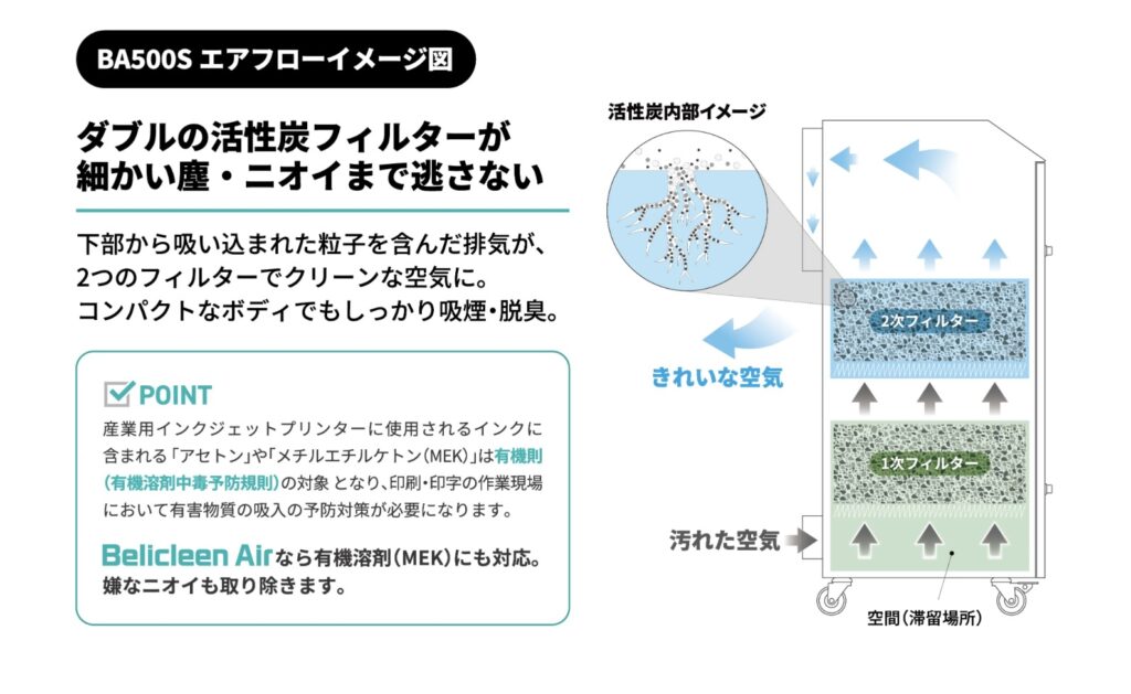 ダブル活性炭フィルターでしっかり吸煙・脱臭!